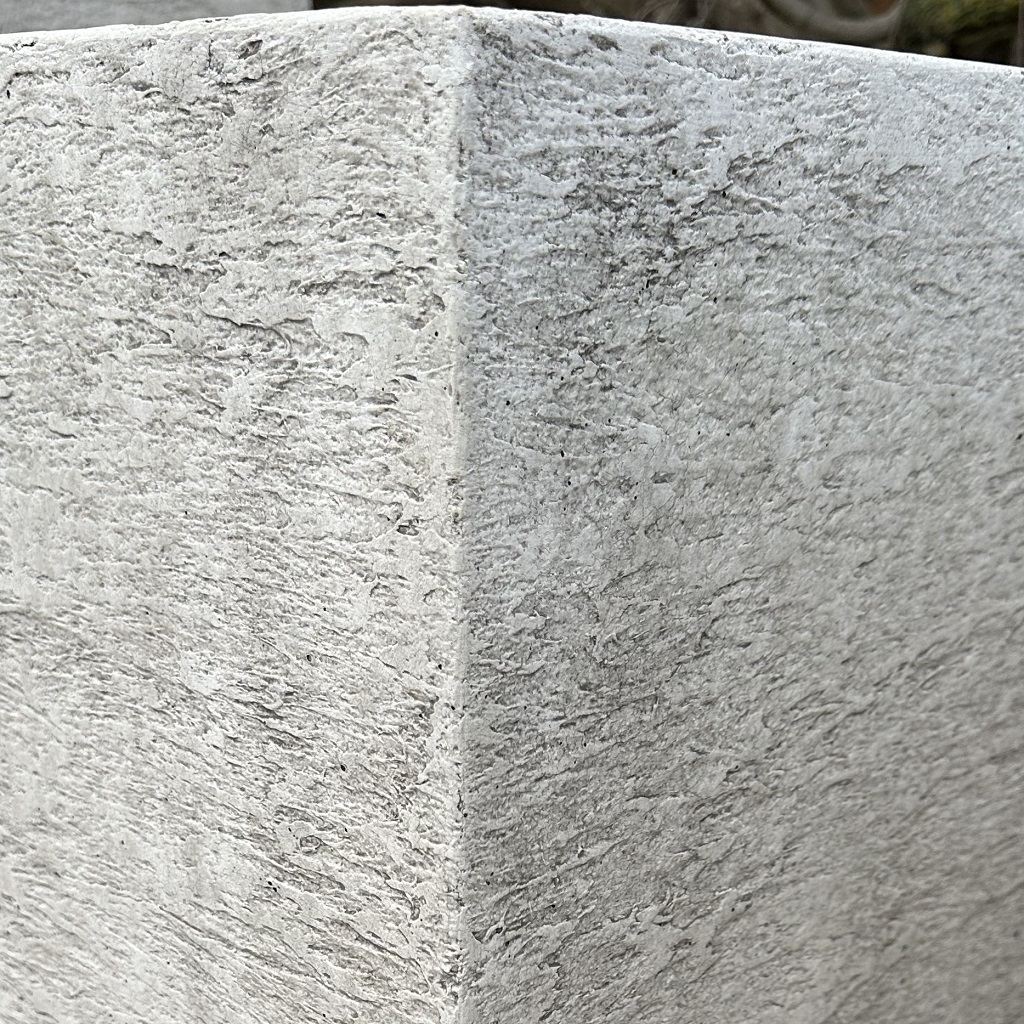 Květináč je proveden v barevném odstínu šedá patina, který mu dodává nadčasový a mírně industriální vzhled. Strukturovaný povrch květináče zvýrazňuje charakter betonu a zároveň zvyšuje jeho estetickou i praktickou hodnotu – je odolný vůči znečištění a nenáročný na údržbu.