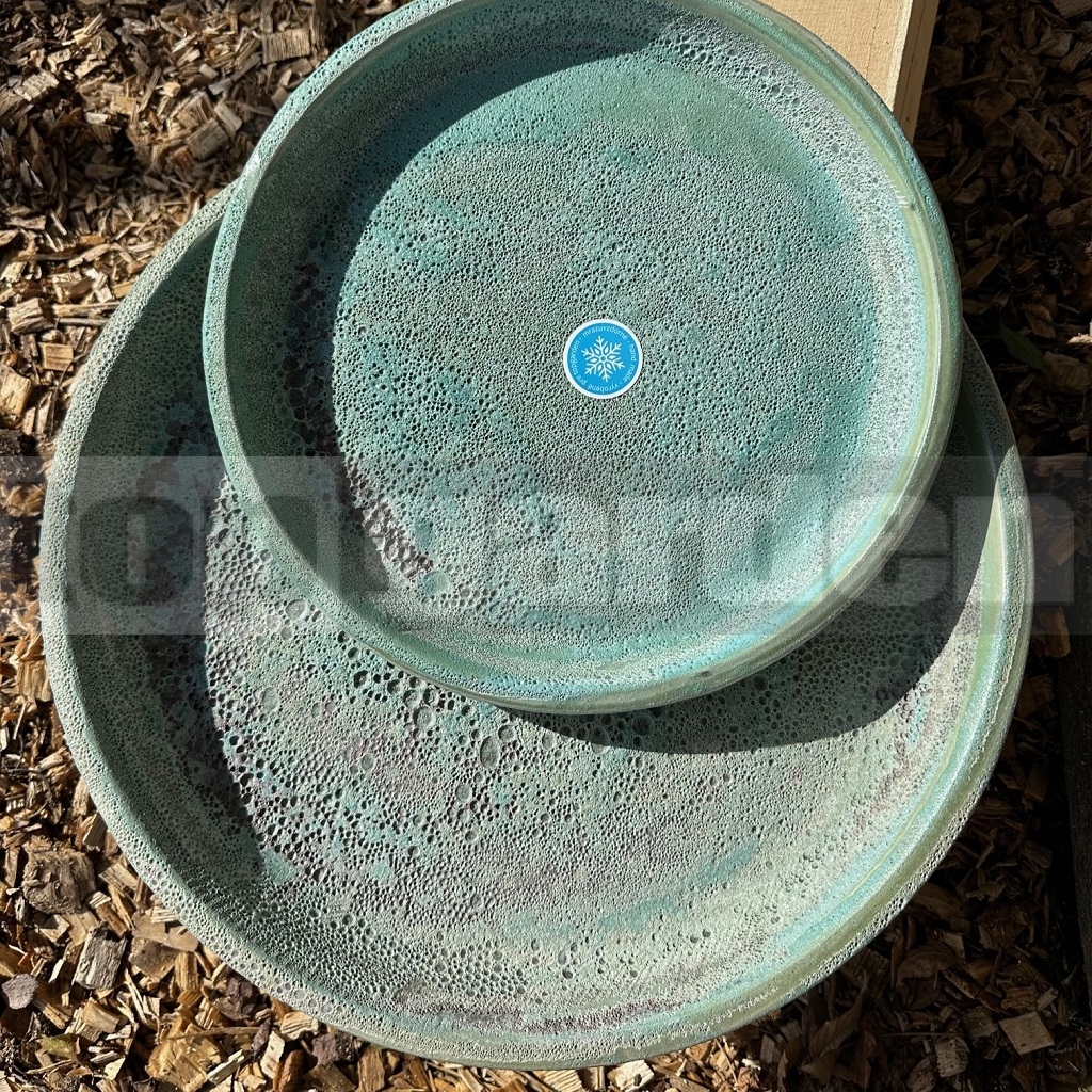 Glazovaná keramická miska pod kvetináč v prevedení Rainforest.