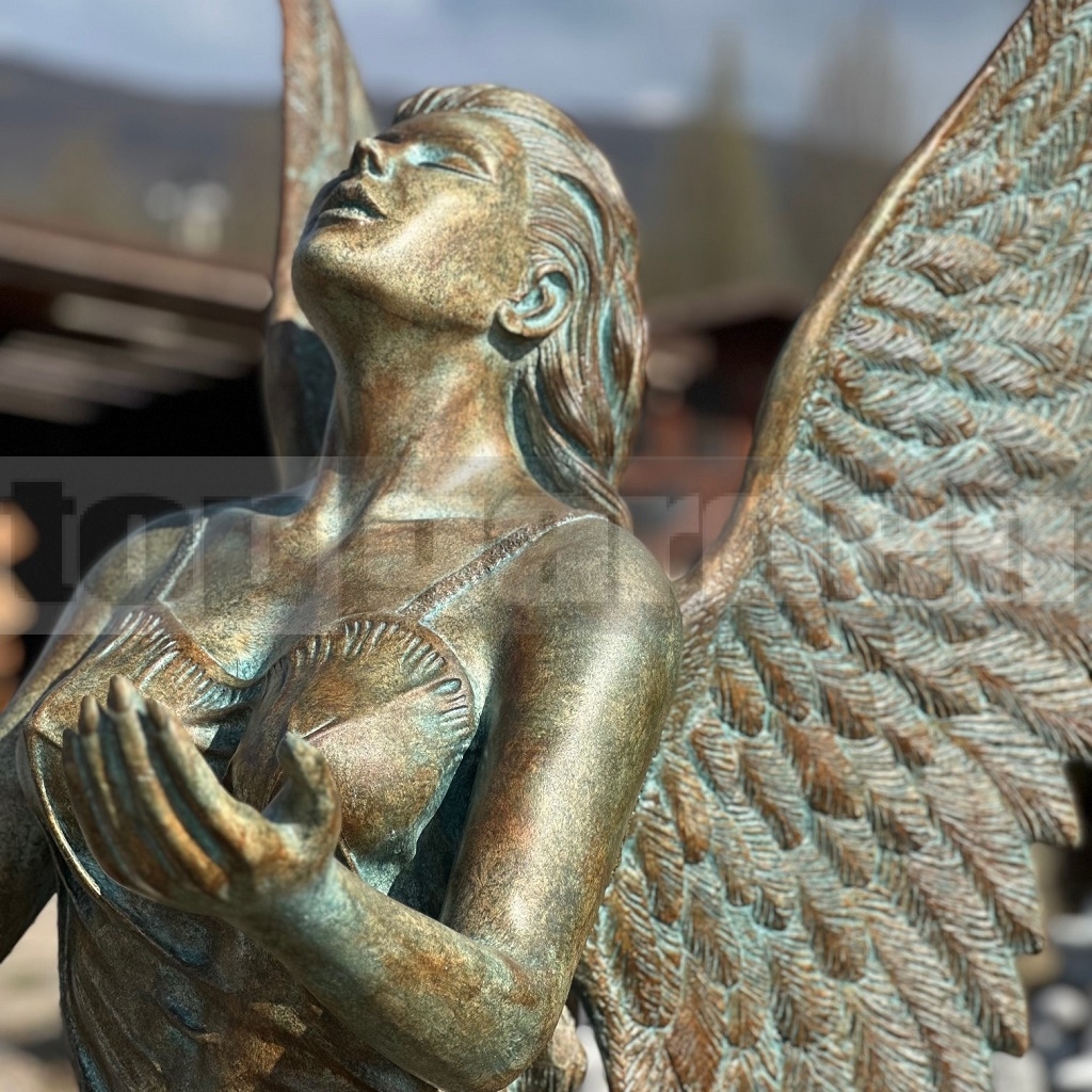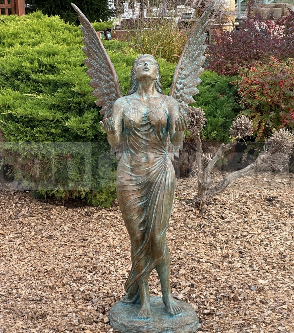 Socha Anjel vrúcnosť ART Exclusive je vyrobená zo špeciálneho betónu, ktorú je možné vyrobiť vo viacerých farebných prevedeniach. Socha je vďaka ručnej povrchovej úprave jedinečná. Každý detail je precízne dotvorený tak, aby navodil dojem, že socha je živá .