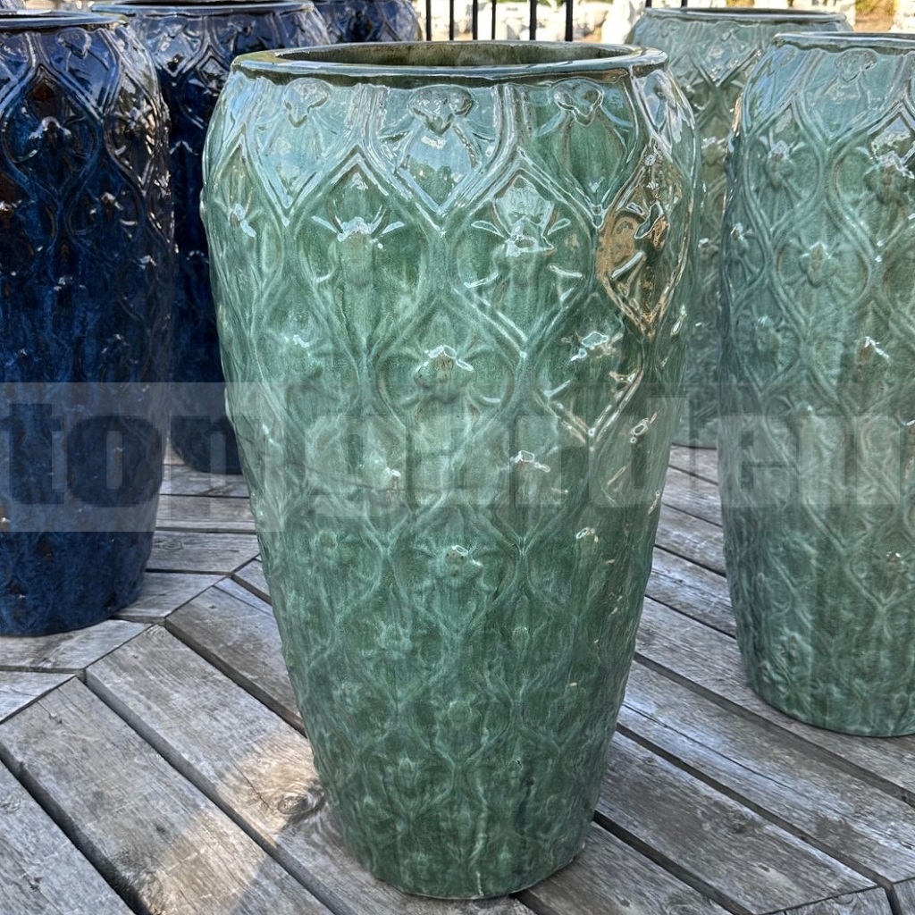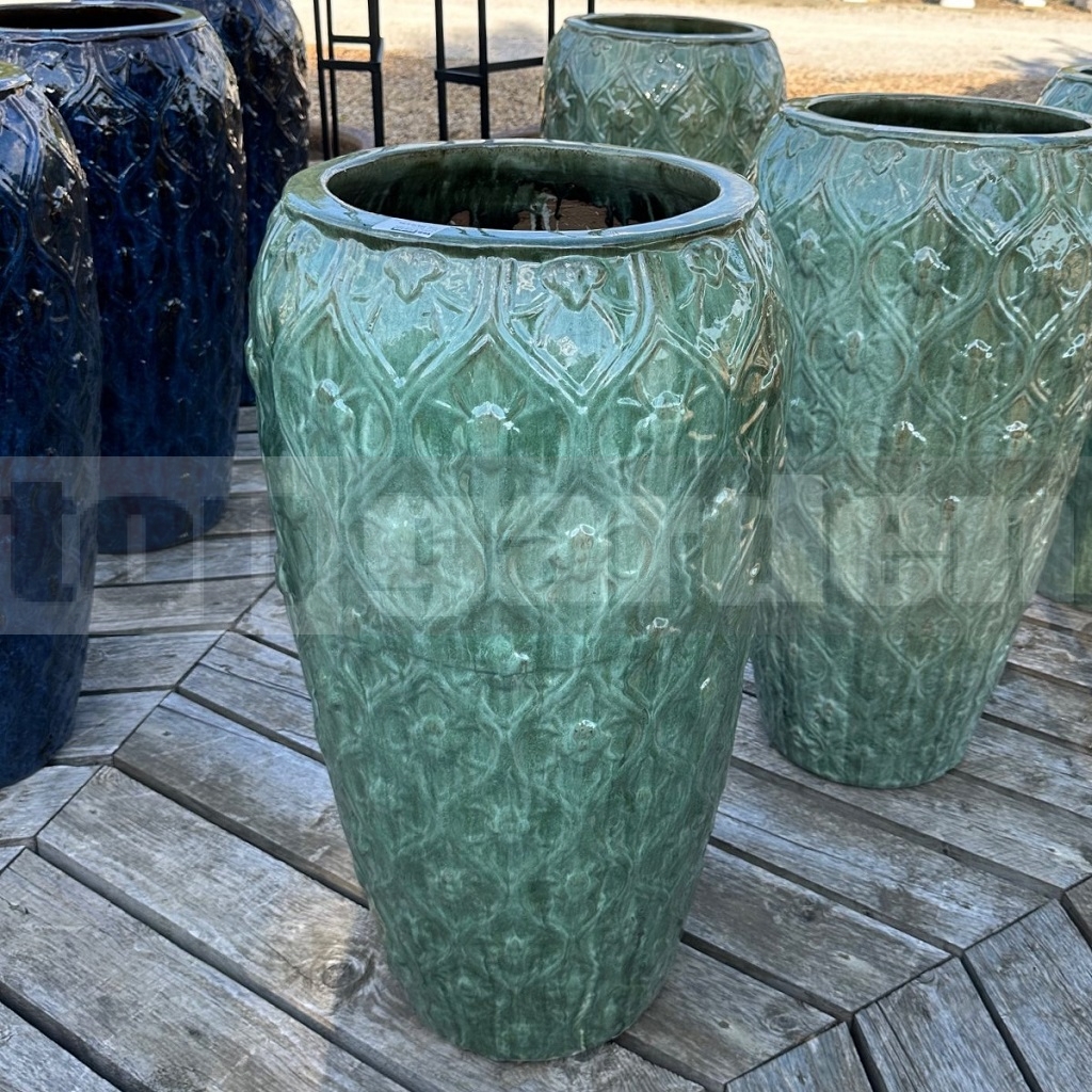 Vysoká glazovaná záhradná amfora Calliope v nádhernej zelenej farbe Moss Green.