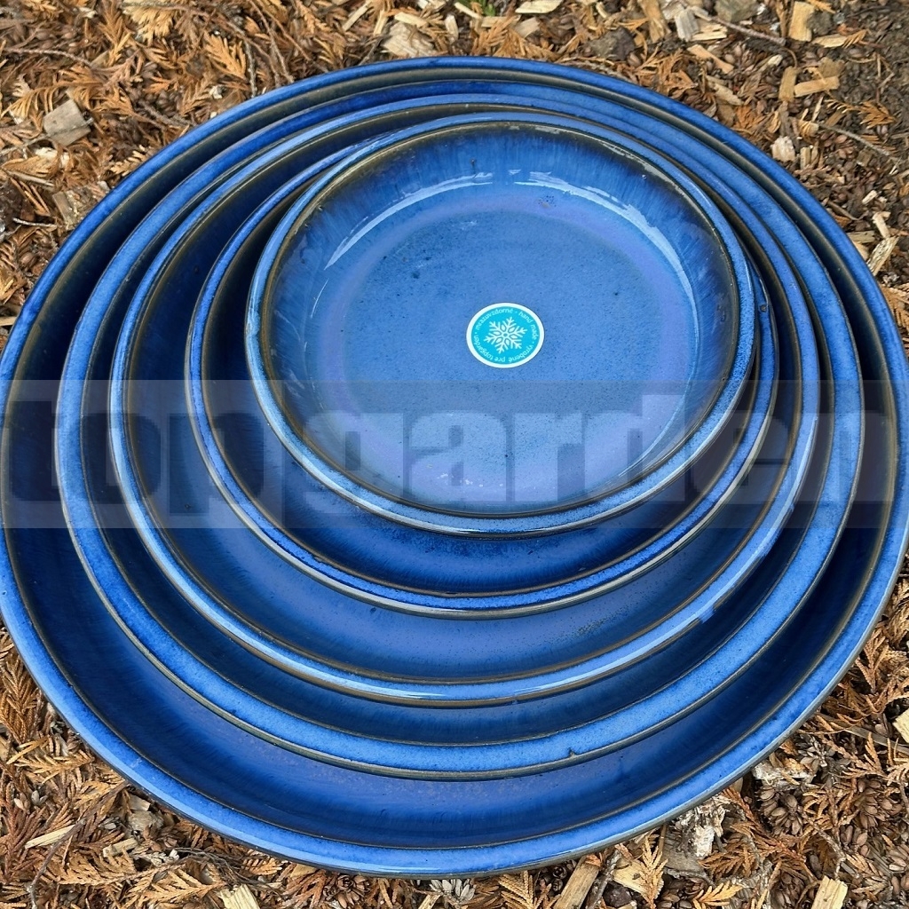 A zománcozott virágcserép alátét kék színben.