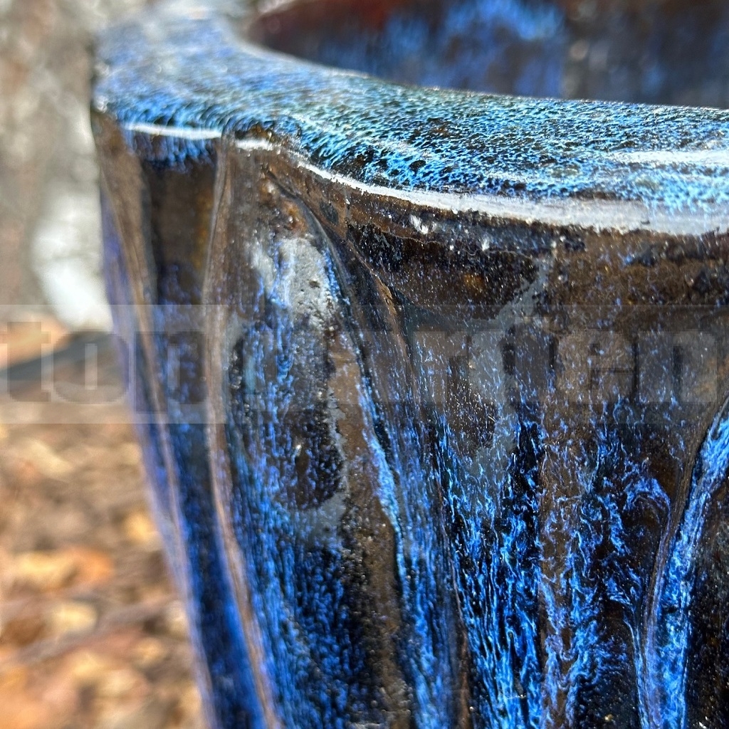 Je vyrobený ručne, čo mu dodáva jedinečný charakter a vysokú kvalitu spracovania. Tento elegantný kvetináč je v modrej farbe Pacific Blue. Je vhodný do exterieru alebo s použitím podmisky aj interieru.