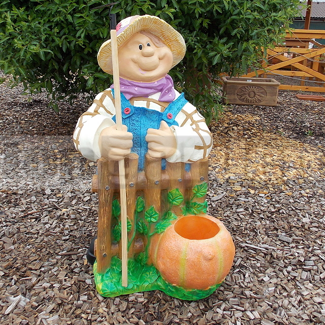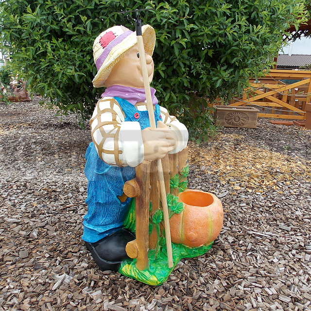 Zobrazená záhradná postavička záhradník s motykou má rozmer 50x50 a výšku 83cm.
