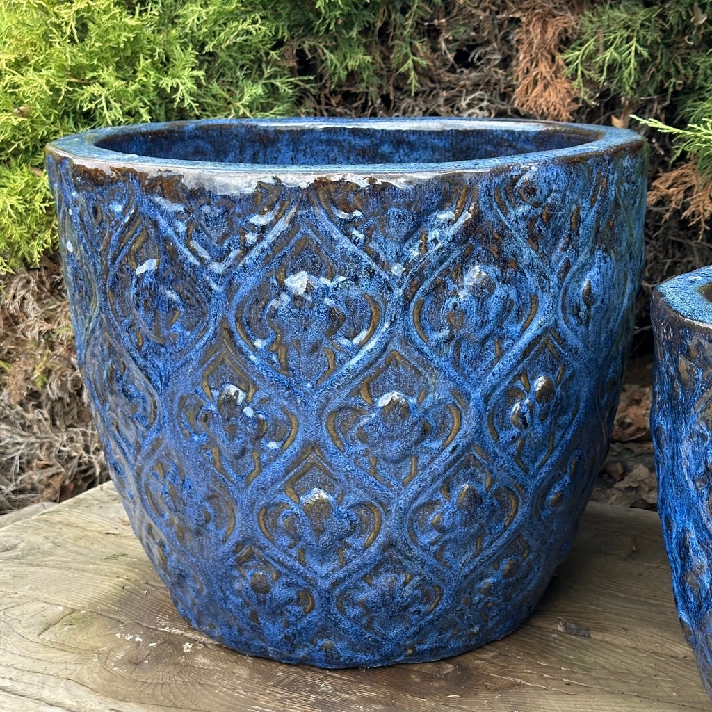 Mrazuvzdorný kvetináč Hekaté je luxusný doplnok vhodný do záhrady a na terasu. Pri použití podmisky skrášli akékoľvek miesto vašho domova. Glazovaný kvetináč v modrej farbe má elegantný dizajn v povrchovej úprave Pacific Blue