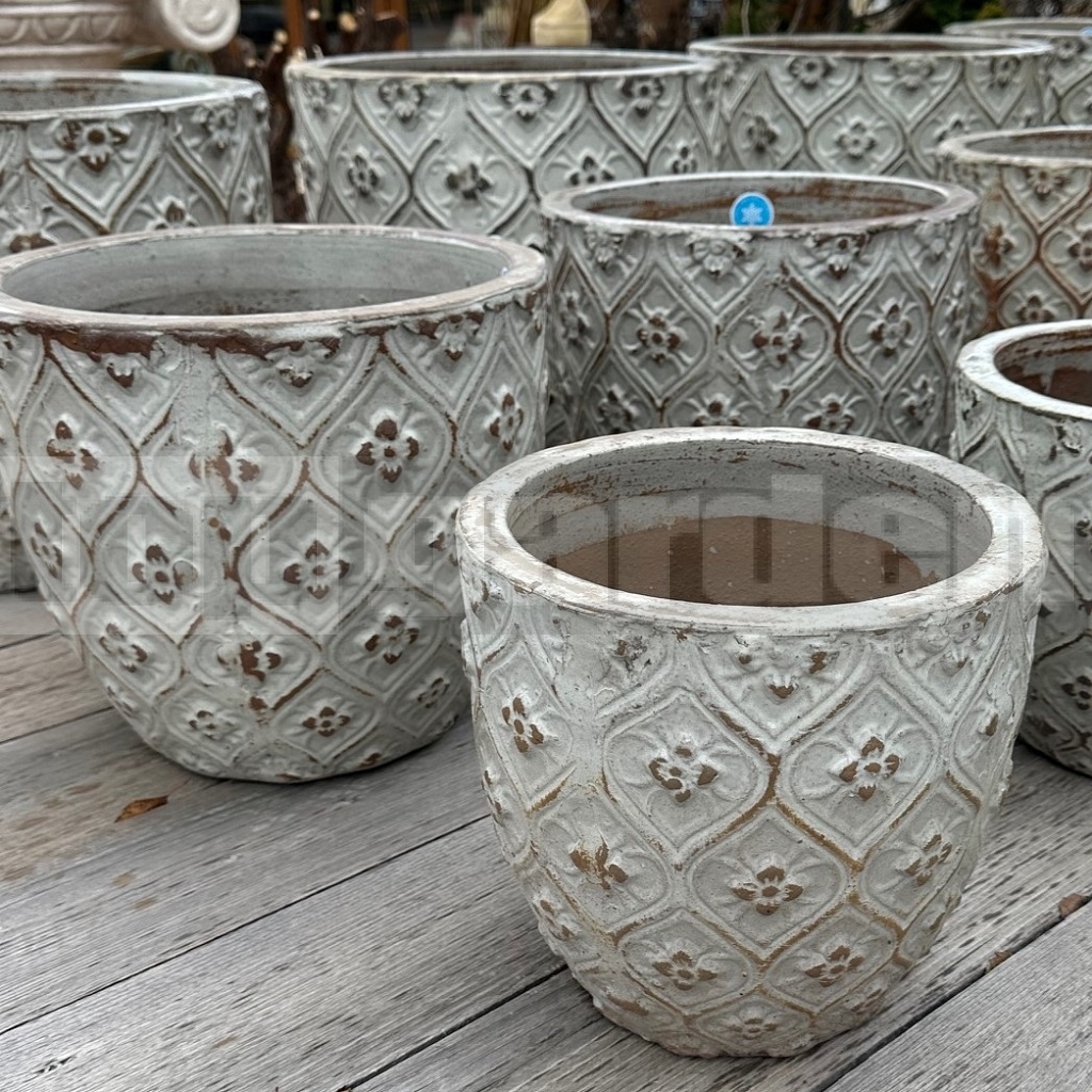 Povrch kvetináča je glazovaný a ručne upravený špeciálnou technikou. Eleganciu kvetináča dotvára použitý vzor v glazúre. Každý kus je ručne vyrábaný.